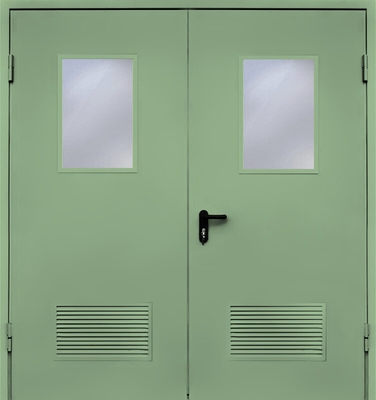 Двупольные противопожарные двери с вентиляцией и стеклом в Белоозерском